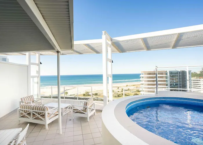 Coastal Penthouse 3Br Luxe Living Over Kirra Beach ferielejlighed ligger 1 km fra Tweed Valley af Gold Coast og tilbyder en tagterrasse pool. Denne ferielejlighed måler 271 m² og har 2 soveværelser, 2 badeværelser og et udstyret køkken.
